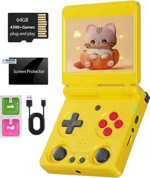 R36T Retro Gaming Console, 3.5'' IPS Screen CRT-Inspired, Handheld Game Console with 18000+ Classic Games Supports WiFi Networked Fighting and OTG, 3500mAh Battery, with Portable Case(Black 64GB)