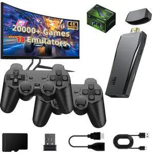 ZeroStory 2026 Upgrade Retro Game Console Stick, Retro Video Game Console Stick Built in 20000+ Games with 18 Emulators, 4K HDMI Output with 2 Pack 2.4G Controllers (64GB Memory Card)