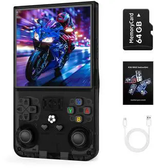 R36MAX Handheld Game Console, Retro Gaming Console with 4000mAh Battery 4.0IPS Screen, Open Source Linux System, with 64GB TF Card Portable Video Gaming Console, Transparent Black