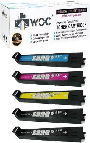 WOC Remanufactured Toner Cartridge Replacement for HP 823A / 824A (5-Pack: Cyan + Magenta + Yellow + 2X Black) for Use in Color LaserJet CM6030 / CM6040 / CP6015