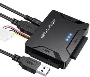 This USB 3.0 to SATA IDE Adapter connects any standard 2.5in or 3.5in SATA or IDE hard drive to a computer through an available USB 3.0 port, also supported DVD-ROM, CD-ROM, CD-RW, DVD-RW, DVD+RW; Backward compatible with USB 2.0/1.1.