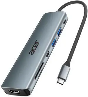 USB C Hub, 7 in 1 Multi-Port Adapter for Laptop, 4K, HDMI Splitter with 2 USB A 3.1 & Type-C to HDMI Data Port, PD 100W Charging, SD Card Reader for Computer, Desktop, Space Grey