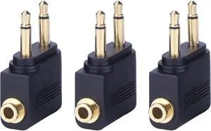 eBoot Airplane Airline Flight Adapters for Headphones (3 Pack, Golden Plated)