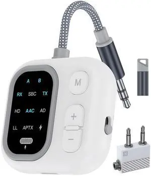 Bluetooth Transmitter Receiver, Colorful Display, 2-in-1 Wireless Audio Adapter Dual Pairing Bluetooth 5.4 Chip, for Airplane TV Home Stereo Theater Headphones Speakers with 3.5mm Aux Port