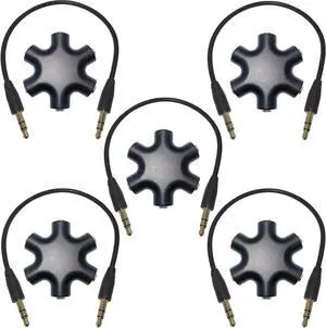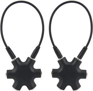 2PCS Multi Headphone Splitter 3.5mm Headphone Audio Jack Splitter 1 Male to 5 Port Female Earphone Headset Adapter (Black)