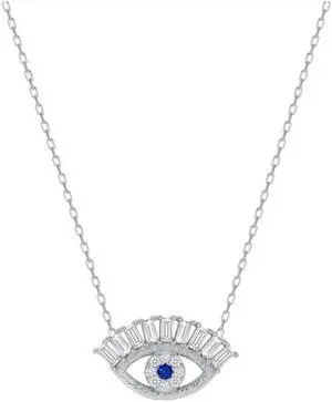 925 Sterling Silver Evil Eye Baguette Cubic Zirconia Pendant Necklace with chain, Italy All ages