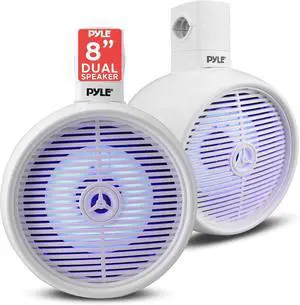 Pyle Bluetooth Waterproof Marine Off-Road Speakers - 8 300W 2-Way Wakeboard Tower Sound System with LED Lights, Full Range Mountable Outdoor Stereo for Car, ATV, UTV, Jeep, Boat, Set of 2 (White)