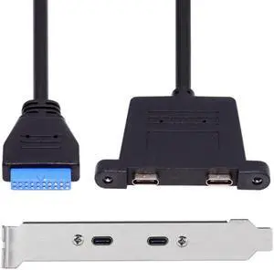 HKCY USB3.0 Motherboard 19/20Pin to USB-C Type-C Dual Ports Female PCI-E Back Panel 5Gbps Cable
