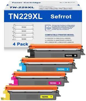 Greencycle TN229XL TN229-XL (BK/Y/M/C) Toner Cartridge Compatible for Brother TN229 TN229K use with MFC-L3780CDW MFC-L3720CDW HL-L3220CDW HL-L3280CDW HL- L3300CDW Printer(4 Pack,High yield)