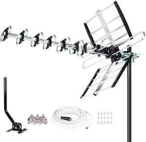 Five Star Outdoor Digital Amplified HDTV Antenna - up to 200 Mile Long Range,Directional 360 Degree Rotation,HD 4K 1080P FM, Supports 5 TVs Plus Installation Kit and Mounting Pole
