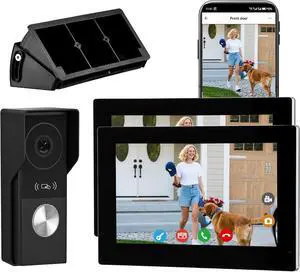 visiPower 2pin-Wired 2MP HD Indoor 7" WiFi Monitor Smart Home Video Doorbell Intercom System, Remote Unlock Video Record Motion Detect 2-Way Talk IR Camera Door Bell 1x doorbell + 2x 7in Monitor Black