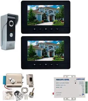 7 Inch LCD display 2-Wire 2pin Wire Video Door Phone doorbell Home Intercom Systems, Power Supply Controller + Electronic Door Lock Support fingerprint/IC cards/password unlock, 1 doorbell + 1 monitor