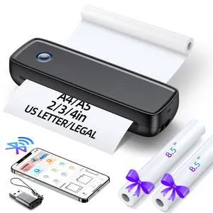 Aixiqee Inkless Portable Printer Wireless for Travel, Thermal Paper Support A4&A5, 8.5" X 11" US Letter &Legal, Compatible with iOS, Bluetooth & USB, Lightweight Wireless Printer for Home/Office