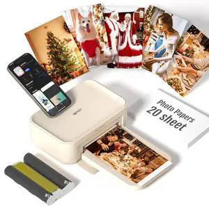iDPRT 4x6 Photo Printer, CP4100 Photo Printer for iPhone & Android with 20 Sheets & 1 Cartridges, Wi-Fi Wireless Portable Picture Printer, Instant Print Photos, Dye Sublimation, Beige