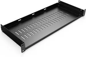 Tecmojo 1U 4-Post Vented Server Rack Mount Shelf,21.7in Deep with Adjustable Depth 13.5-31.8 Inch,Supports to 242 lbs,Universal Tray for 19 Inch AV/Network Equipment Rack,Black