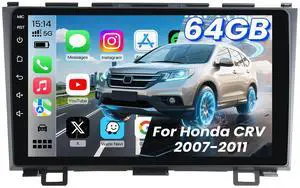 Car Radio Stereo for Honda CRV 2007-2011: 4 Core + 64G HD Touch Screen Head Unit - Wireless CarPlay Andriod Auto GPS Bluetooth RDS FM Mirror Link Backup Camera SWC