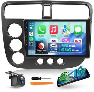 8-Core 4G+64G Car Radio Stereo for Honda Civic 2001-2005, Upriding 9-inch 1280P QLED Touchscreen Radio with Wireless Carplay Android Auto DSP BT5.1 GPS 5GWifi SWC Backup Camera