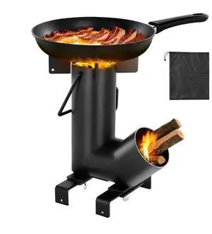 VEVOR Camping Rocket Stove Wood Burning Portable Rocket Stove Carbon Steel Black