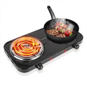 Double Burner Cooktop, 2000W Portable Electric Stove, 5 Level Temperature Control, Easy to Clean, Power Indicator Lights, Coil Hot Plate for Home Dorm Camping Cooking