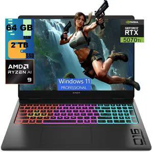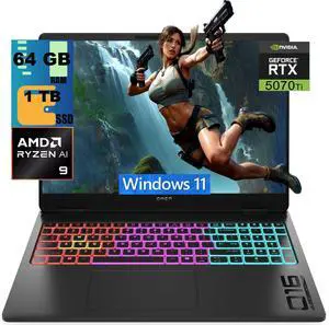 HP Omen 16 Gaming Laptop, 16" WQXGA 240Hz, AMD Ryzen AI 7 350 8 cores Processor, NVIDIA GeForce RTX 5070 8GB GDDR7, 64GB DDR5 2TB PCIe SSD, RGB Backlit KB Thunderobot, Windows 11