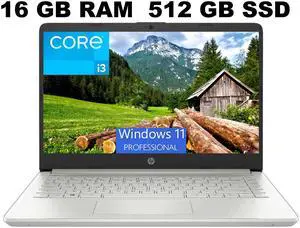 HP 14 Laptop, 14" FHD Display, AMD Ryzen 3 3250U Processor, 16GB DDR4 RAM, 512GB PCIe SSD, USB Type-C, Wi-Fi, Webcam, HDMI, Windows 11 Home, Silver