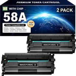 CF258A 58A Toner Cartridge Black with Chip Replacement for HP 58A CF258A 58X CF258X Work with MFP M428fdw M428fdn M428dw Pro M404n M404dn M404dw M404 M428 M406 M430 Printer (2-Pack)