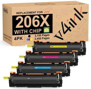206X 206A Toner Cartridge 4 Pack High Yield (Latest Upgraded Chip) Compatible Replacement for HP 206X W2110X W2111X W2112X W2113X use with Color Pro M255dw MFP M283fdw M283cdw M282nw Pirnter