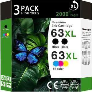 63XL High Yield Ink Cartridges Combo Pack (2 Black/1 Tri-Color 3-Pack) Compatible for HP 63XL 63 Replacement for HP Envy 4510 4511 4512 OfficeJet 3830 3831 3832 Deskjet 1110 1111 2130 Series Printers