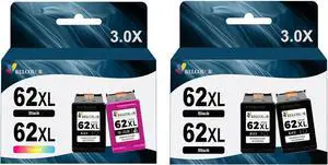 Relcolor Remanufactured Ink Cartridge Replacement for HP 62XL 62 XL Black Color Combo to 5540 5542 5545 5640 5642 5660 5664 5665 7640 7645 8000 200 250 5740 5742 5743 5745 8040 8045 Printer 4 Pack