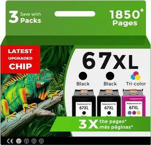 Compatible 67XL Ink Cartridge Replacement for HP Envy 6400 6055e 6455e 6055 6452 6455 DeskJet 2855e 4255e 4155e 2755e 4155, Black, Tri-color, 3-Pack