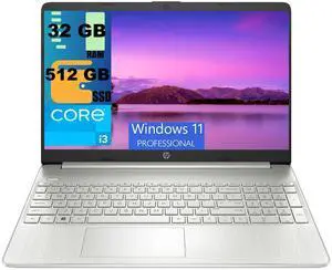 HP 15 Laptop, 15.6" FHD (1920 x 1080) Display, Intel Core i3-1215U 6 Cores Processor, Intel UHD Graphics, 32GB DDR4  512GB PCIe SSD, Fingerprint Reader, Webcam, SD Card Reader, Wi-Fi, Windows 11 Pro
