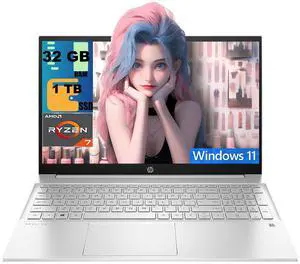 HP 15.6" FHD Laptop, AMD Ryzen 5-5500U Processor, 16GB RAM, 512GB PCIe SSD, AMD Radeon Graphics, HD Webcam, Bluetooth, Wi-fi, Windows 11 Pro, Blue, 32GB Hotface USB Card- Operating System: ?Windows 11 Pro