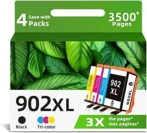 902XL Ink Cartridges Combo Pack (4-Pack) Replacement for 902 XL HP902 HP902XL Black Color for HP902 OfficeJet 6978 6968 6970 6958 6960 6966 6956 6950 6974 6963 6961 6951 Printer Cyan Magenta Yellow
