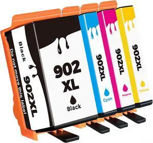 902XL Complete Set of 4 Ink Cartridges Replacement for 902XL High Yield 902 Up to Date Chips for HP OfficeJet Pro  6954/ 6960 / 6962/ 6968 / 6975/ 6978