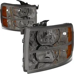 DNA Motoring HL-OH-CSIL07-SM-AM For 2007 to 2013 Chevy Silverado 1500 2500 3500 Headlight Smoke Housing Amber Corner Headlamp 08 09 10 11 12 Left+Right