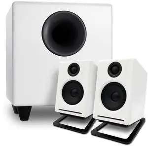 Audioengine A2 White Computer Speakers with S8 White Subwoofer and DS1M Metal Stands