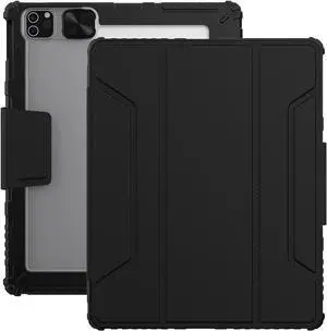 iPad Pro 11 inch Case 2024 M4 Chip Lightweight Dual-Layer Protective Tablet Cover, Durable Shock-Absorbing Corners with 360° Rotating Retractable Kickstand Ring Built-in Pen Slot, Black
