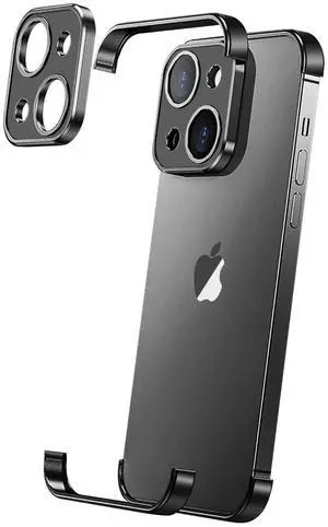 Compatible with iPhone 15 Case with Camera Lens Protector, Aluminum Metal Frameless, Borderless Design, Slim Thin & Lightweight, Shockproof Bumper Cover, for Women and Men (Black)