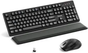 Wireless Keyboard and Mouse Combo with Wrist Rest, 2.4G Full-Sized Keyboard and Mouse Cordless, 3 DPI Adjustable Silent Mouse, Dual-System Keyboard for Computer/Laptop/Windows/Mac (Black)