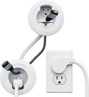 Electronics In Wall Cable Management Kit Behind Wall TV Wire Kit With Duplex Power Outlet - In Wall Cord Concealer With 3 Interchangeable Cable Inserts - Easy DIY Without Electrician White