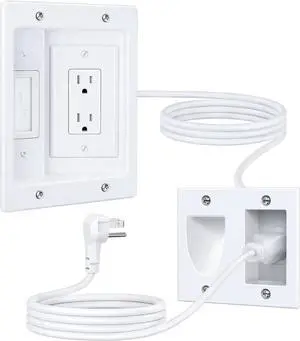 in Wall Cable Management Kit, Cable Concealer Kit for Wall Mounted TV, Recessed Outlet with TV Cord Hider for Power Cables & Low Voltage Cables, Fits All Plugs