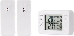 Refrigerator Thermometer, Digital Freezer Thermometer with 2 Wireless Temperature Monitor Sensors, Big LCD Display, Min/Max, Audible Alarm for Home Restaurants Fridge