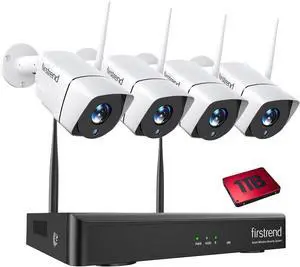 Wireless Security Camera System, 1080P firstrend 8CH with 4 pcs 2MP Cam Full HD 1TB HDD 24/7 Recording Surveillance Night Vision Motion Alert APP CCTV Surveillance H.265 with AI Human Detection