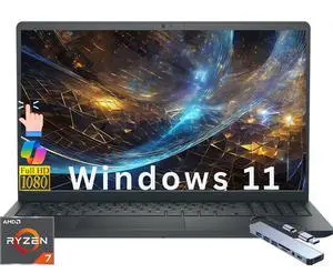 Dell DC15255 Home & Business Laptop Notebook ,15.6" FHD Touch Display,AMD Ryzen 7 7730U (Beat I5-1235U),32GB RAM,256GB SSD, Webcam, Bluetooth, Wi-Fi, Windows 11 Home/HUB
