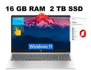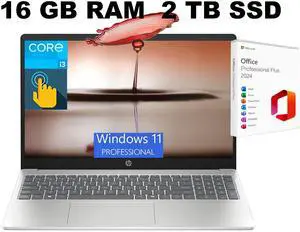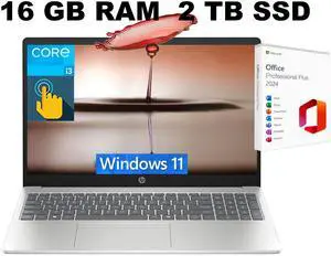 HP 15 Laptop, 15.6" HD Touchscreen, Intel Core i3-1315U 6-Core Processor, Intel UHD Graphics, Wi-Fi 6 - Bluetooth 5.3, 16GB DDR4 2TB PCIe SSD, Windows 11 Pro, Office 2024 License