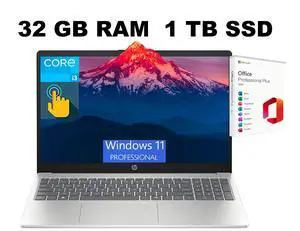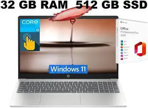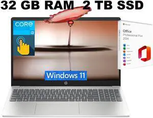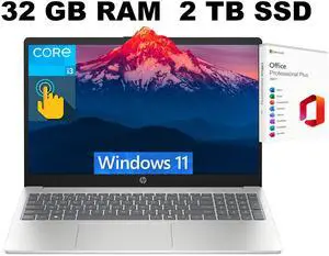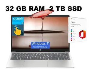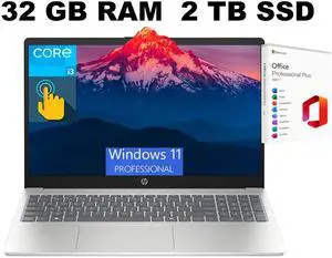 HP 15 Laptop, 15.6" HD Touchscreen, Intel Core i3-1315U 6-Core Processor, Intel UHD Graphics, Wi-Fi 6 - Bluetooth 5.3, 32GB DDR4  2TB PCIe SSD, Windows 11 Pro, Office 2024 License