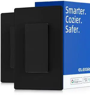 Smart Light Switch, 2.4GHz Wi-Fi Light Switch Compatible with Alexa & Google Assistant, Neutral Wire Required, APP Control and Timer Schedule, UL Certified, Single Pole/3 Way, Black, 2 Pack