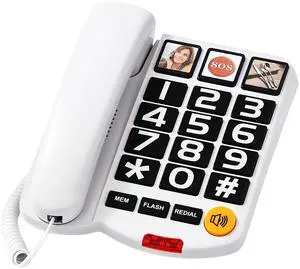 Big Button Phone for Seniors, Dementia Phone with Speakerphone, Amplified Ringer (+110dB), One-Touch Dial & 3 Picture Memory Corded Phones, Hearing & Visually Impaired, Hearing Aid Compatible, White