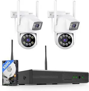 Wireless Security Camera System Outdoor, 2pcs 2K Dual Lens PTZ Auto Tracking Cameras for Home Security, 2.4G/5G WiFi, Color Night Vision, Human Detection, 10CH NVR with 500GB HDD
