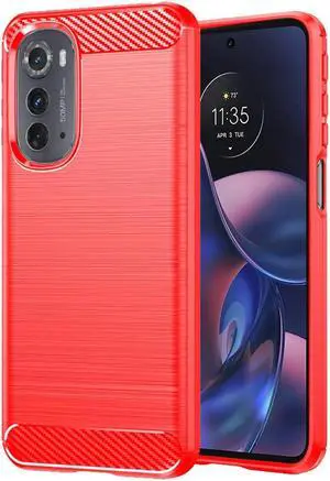 Brushed Metal Design TPU Case for Motorola Edge 2022 - Red
